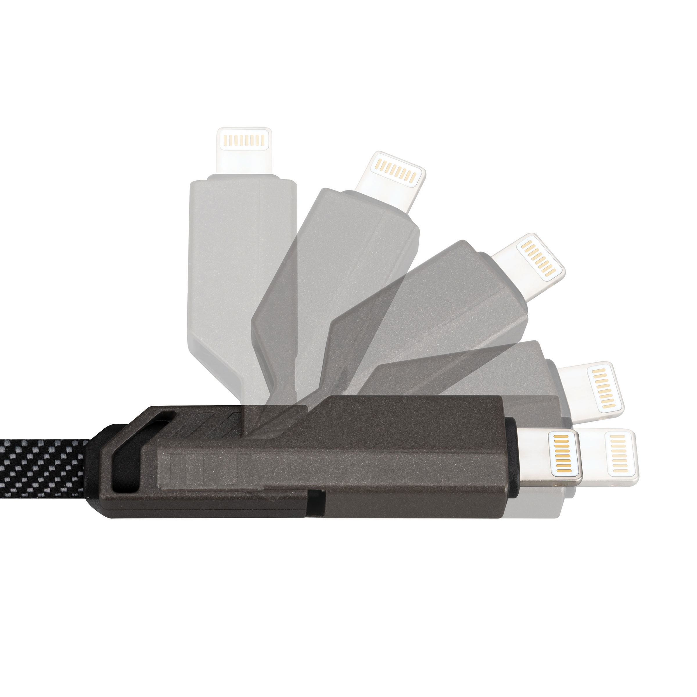 - Durable, Flat Braided Cable with Sleek Aluminum Attached Connectors