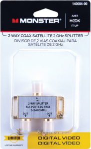 - Splits single 75 ohm coax input into 75 ohm coax outputs