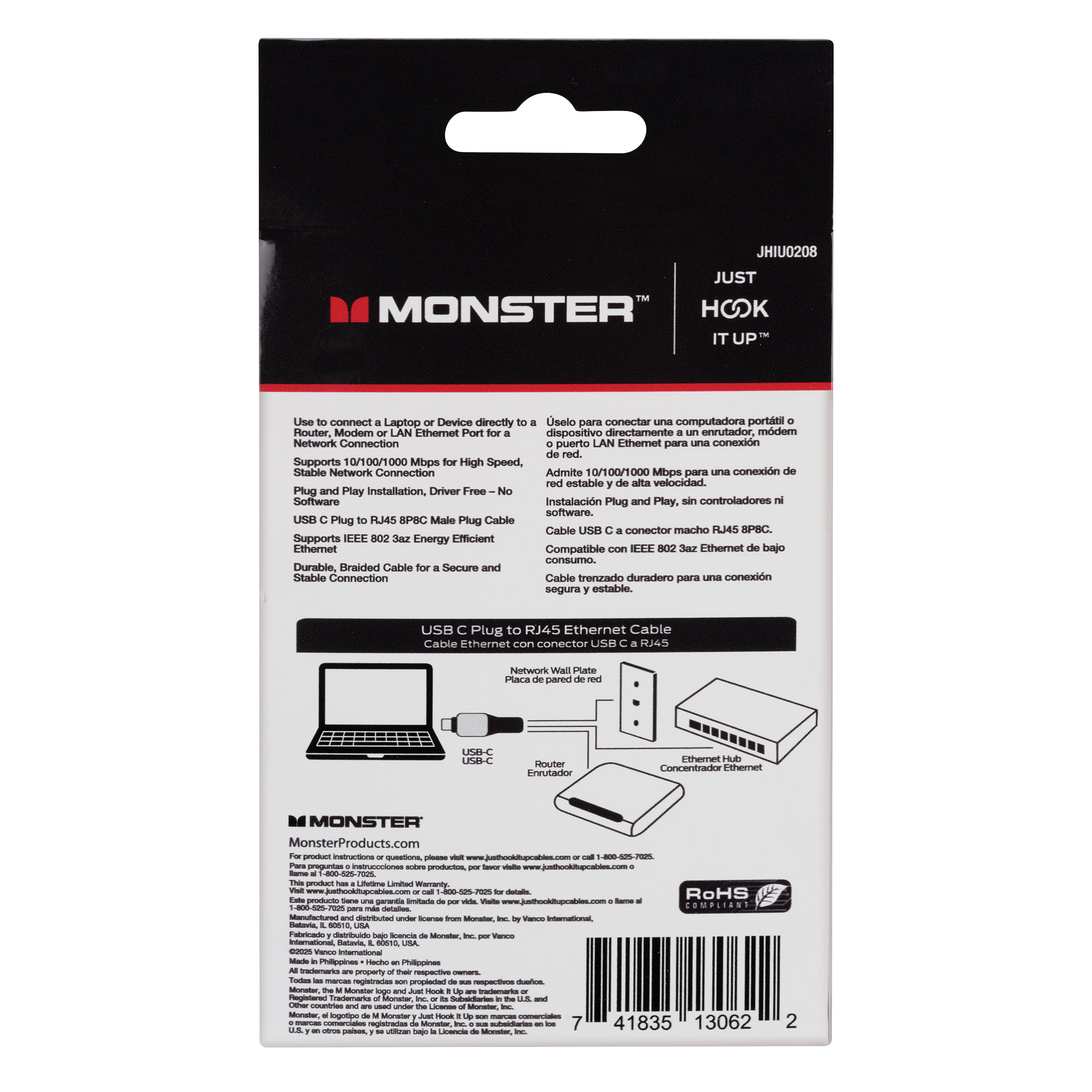 - USB C Plug to RJ45 8P8C Male Plug Cable