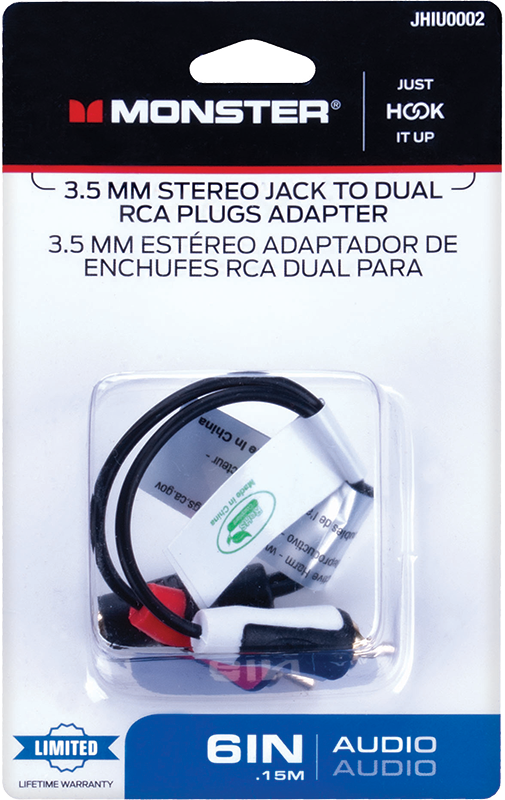 3.5 mm Stereo Plug to Dual RCA Jacks Adapter